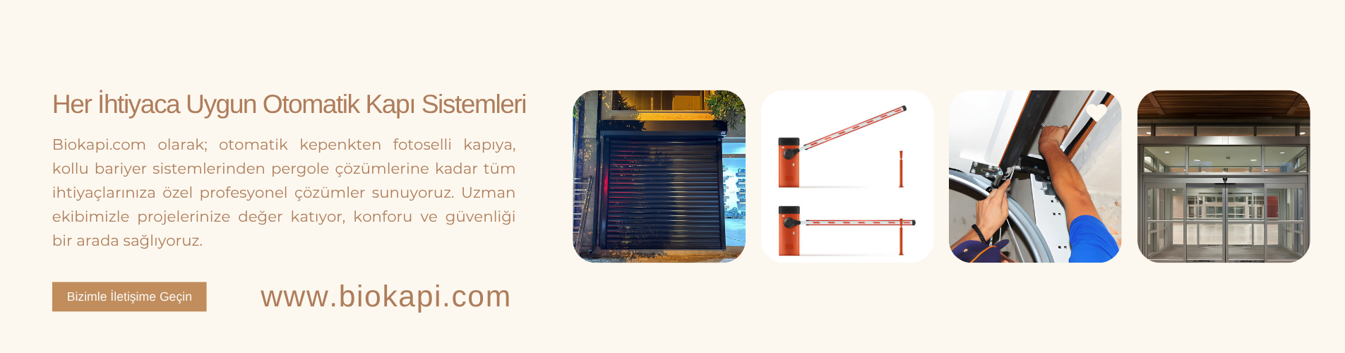 Firmamızın temelleri 2008 yılında Bio Kapı adıyla Bursa’da atılmıştır. Kuruluşumuzdan bu yana işletmelere ve bireylere; otomatik kapı, otomatik panjur, garaj kapıları, yükleme rampası, giriş turnikesi ve ferforje kapılar alanlarında yüksek kalite standartlarında hizmet sunmaktayız.